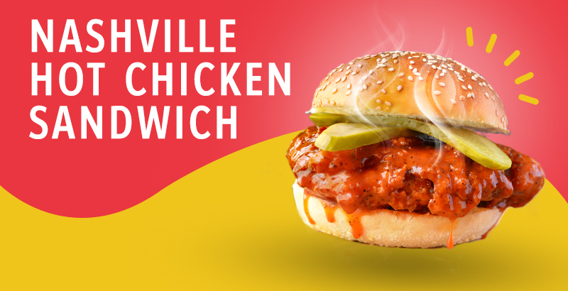 Crispy fried Chicken Tenders tossed in Nashville Hot sauce with pickles. Served on a toasted Kaiser style bun | 1150 Cals |