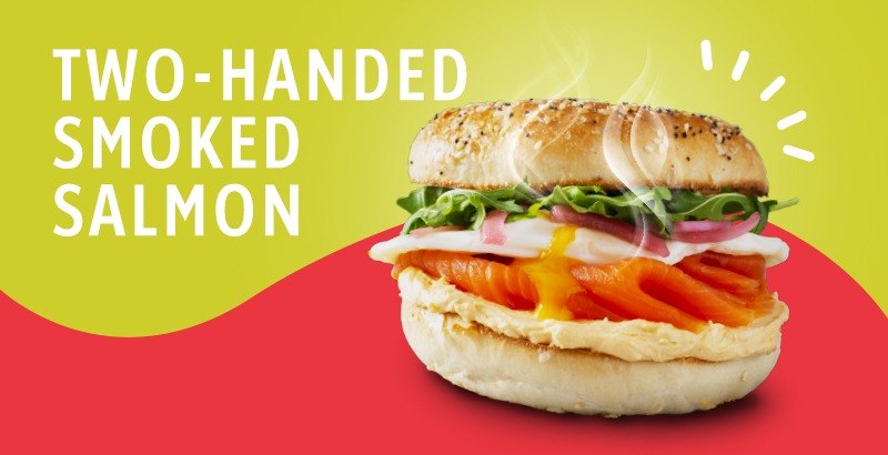 Norwegian smoked salmon, spicy cream cheese, fried egg, pickled onions and arugula on a toasted everything bagel | 1050 Cals |