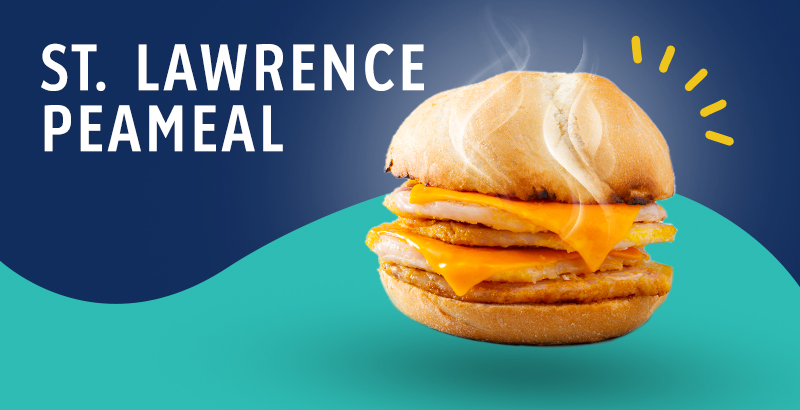 Grilled and stacked peameal bacon and Canadian cheddar cheese on a toasted Kaiser style bun | 1180 Cals |